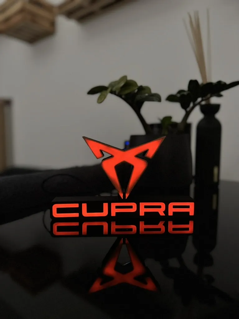 Denna stämningsfulla Cupra nattlampa är utformad som ett lysande märke och använder energieffektiv LED-teknik för att ge ett mjukt och behagligt sken.