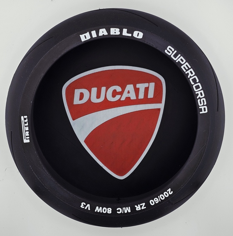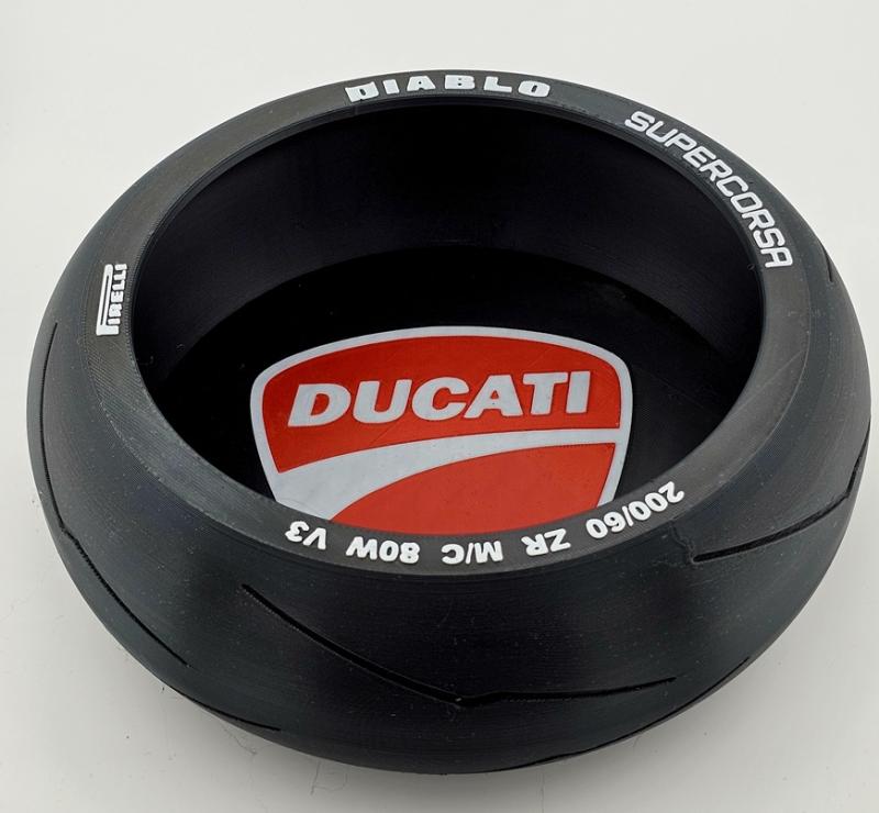 I botten av boxen finns en stilren Ducati-logotyp, vilket gör den till den perfekta inredningsdetaljen för garaget, skrivbordet eller nattduksbordet.