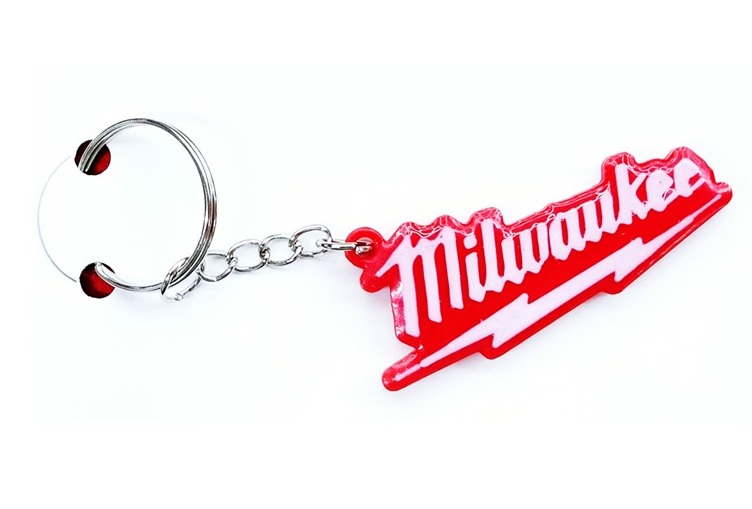 Milwaukee nyckelring nyckelhänge med 3d design. Storleken anpassar vi till att det inte blir för stort, så att den sitter bekvämt i fickan.