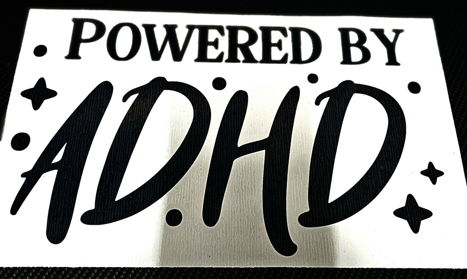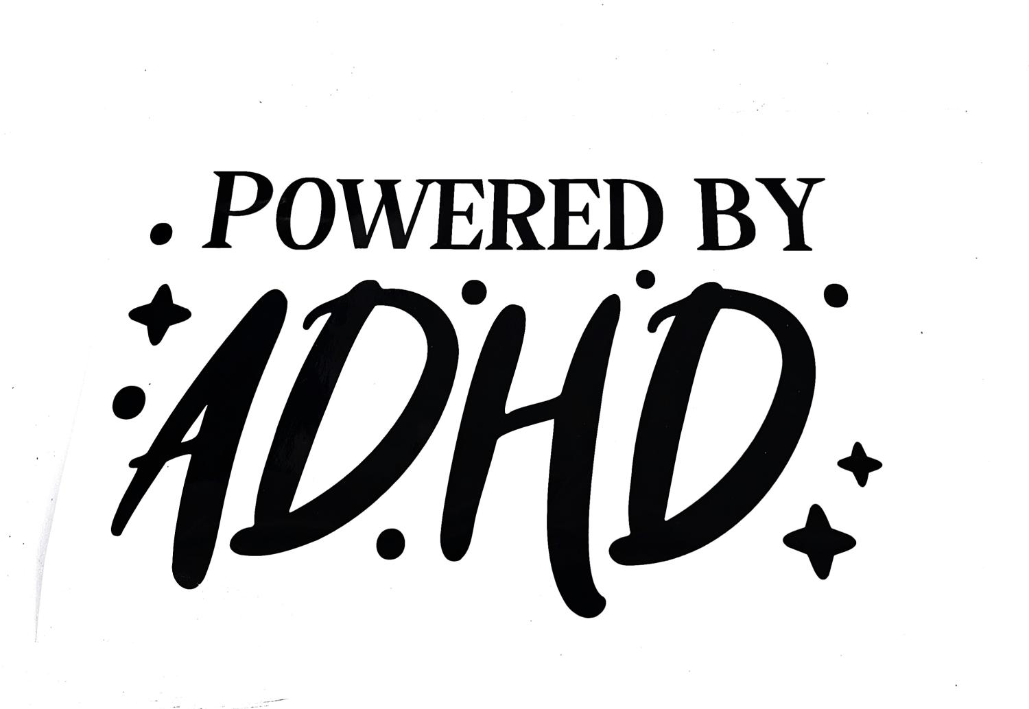 Powered by ADHD dekal 2st dekaler värmetålig klistermärke.. Finns i flera färger att välja bland.