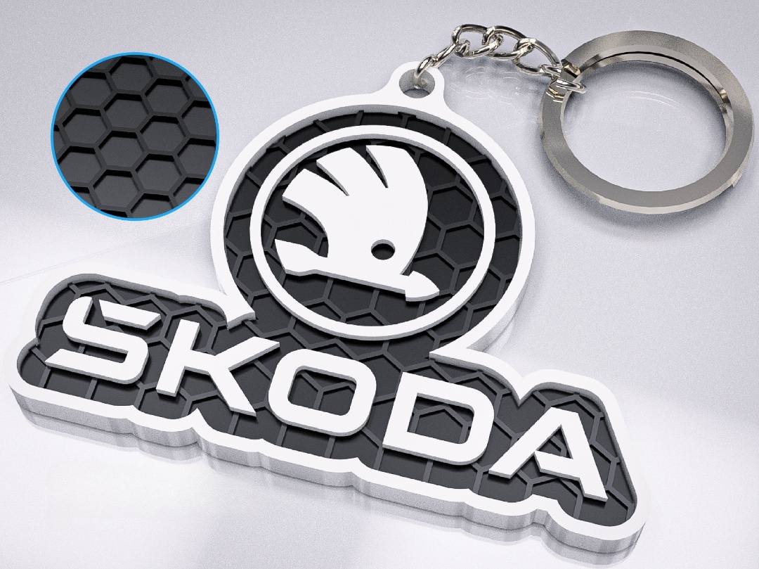 3d designad nyckelring med Skoda logotyp