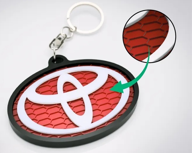 3d designad Toyota logo nyckelring nyckelhänge. Skickas som standard med färgerna som syns på bild.